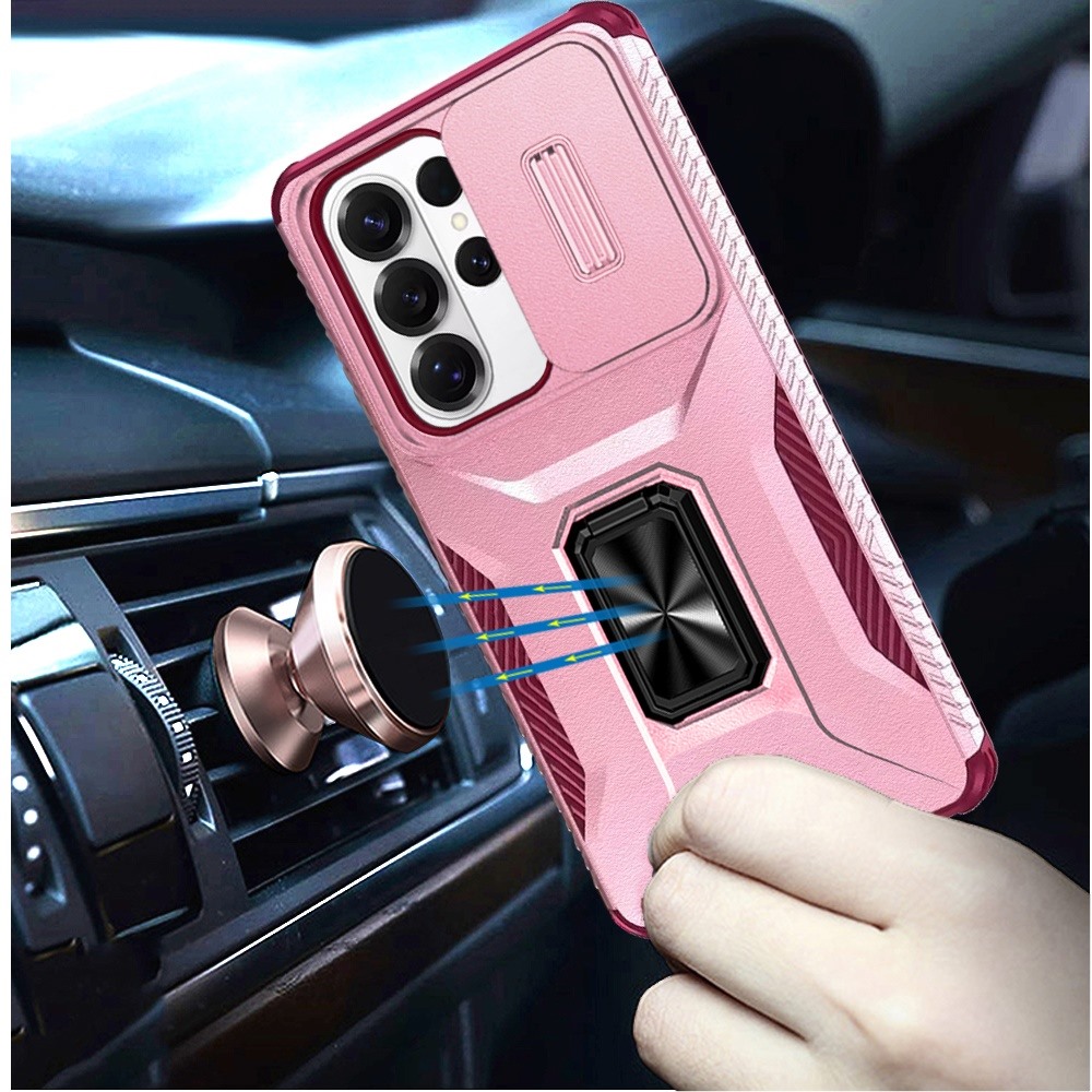 For Samsung s26 Ultra Complete Magnetic Metal Ring Stand Camera Protection Hybrid - Pink+Burgundy