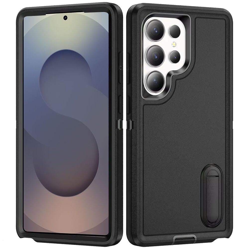For Samsung s26 Ultra PEAK 3in1 Toughest Hybrid with Stand Cover Case - Black/Black