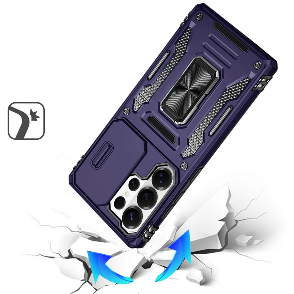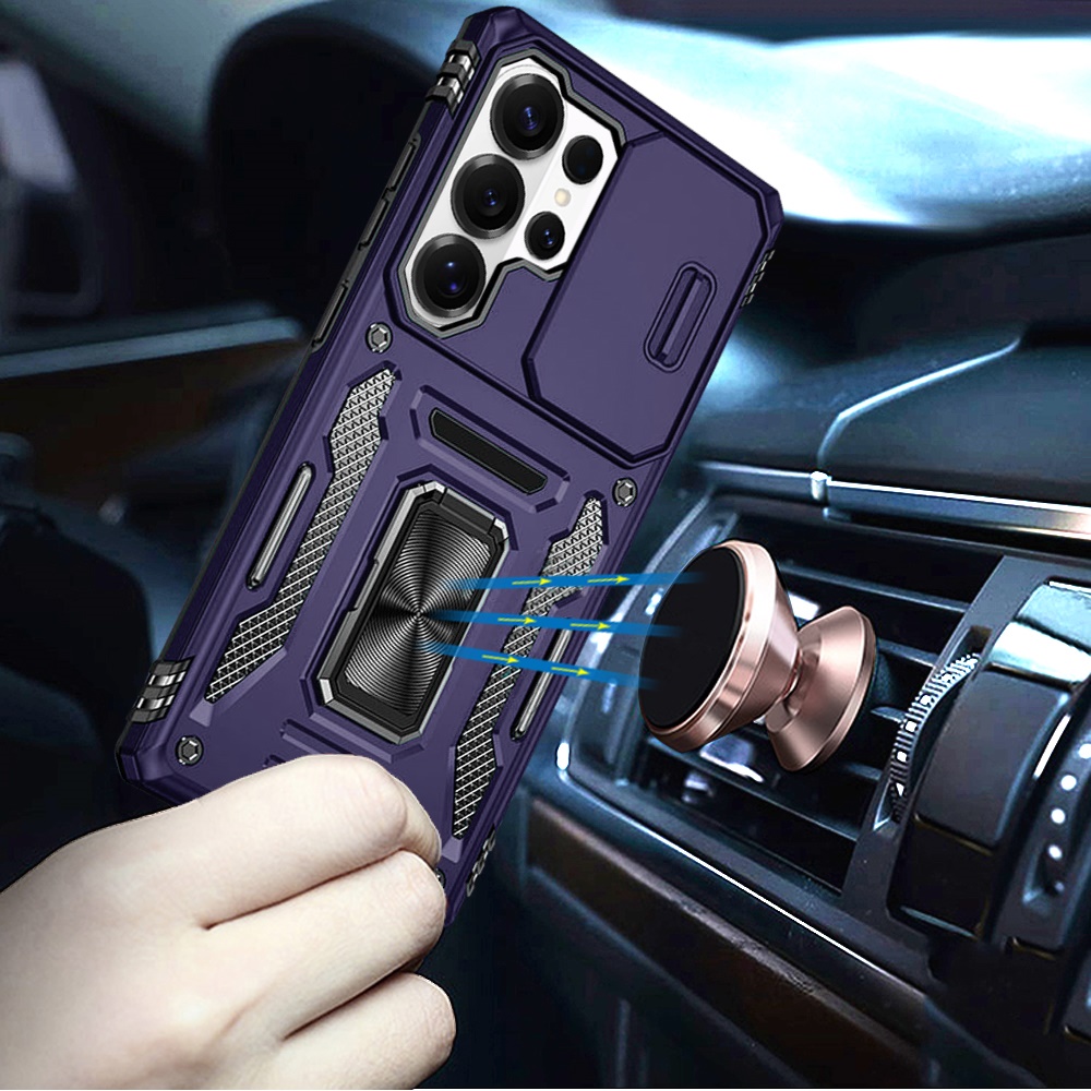 For Samsung s26 Ultra Utter Tough Metal Ring Movable Camera Window Hybrid Case Cover - Dark Purple