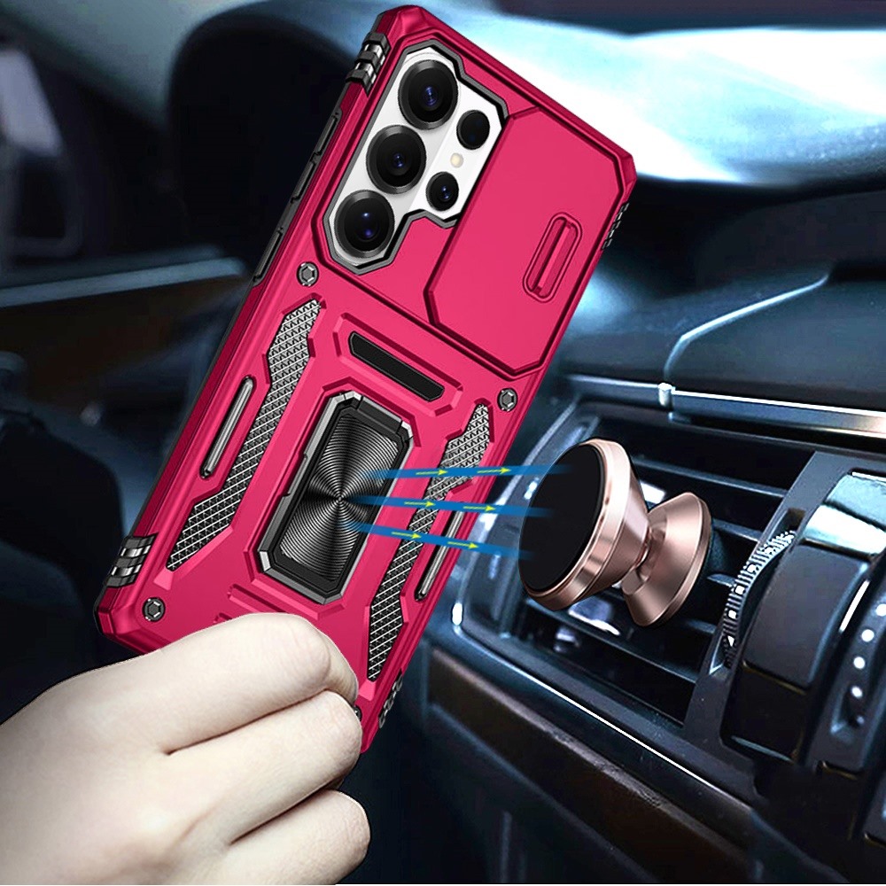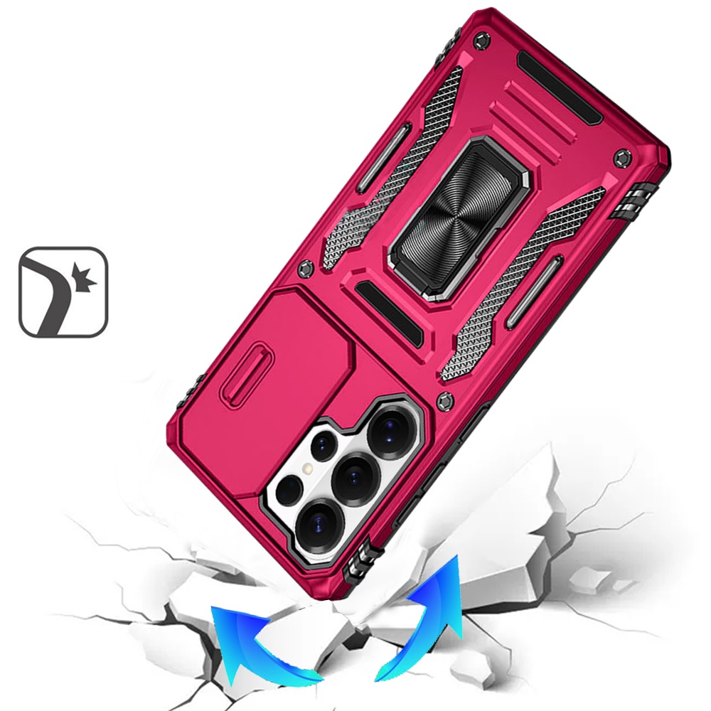 For Samsung s26 Ultra Utter Tough Metal Ring Movable Camera Window Hybrid Case Cover - Hot Pink