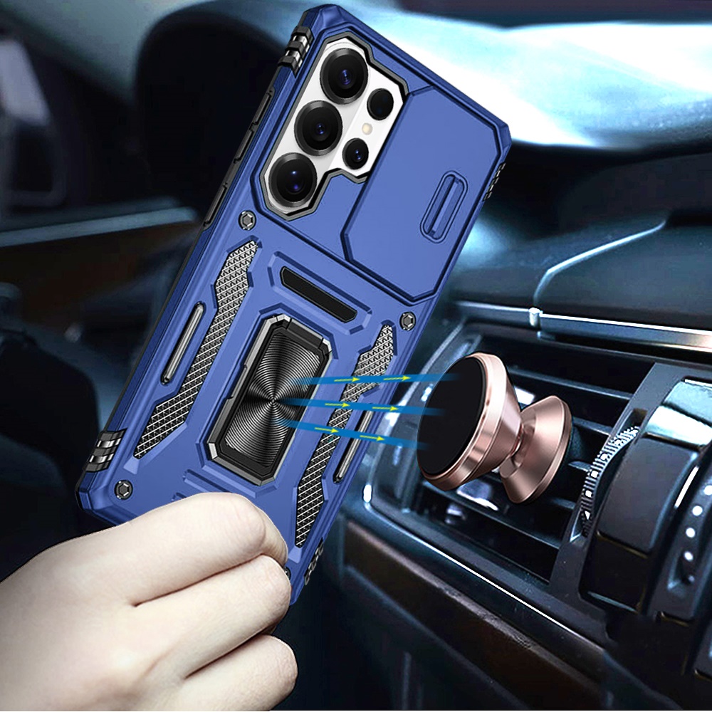 For Samsung s26 Ultra Utter Tough Metal Ring Movable Camera Window Hybrid Case Cover - Navy blue