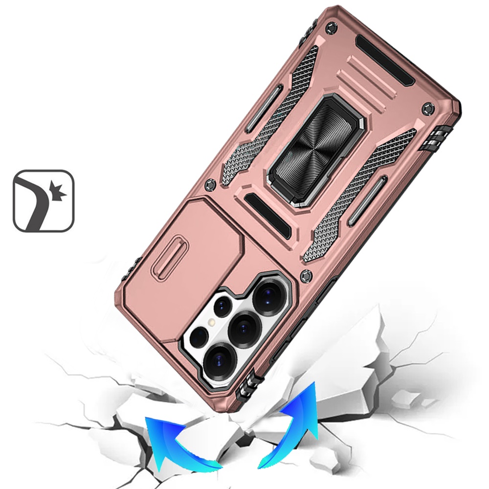 For Samsung s26 Ultra Utter Tough Metal Ring Movable Camera Window Hybrid Case Cover - Rose Gold