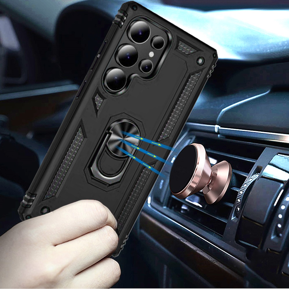 For Samsung s26 Ultra Ring Magnetic Kickstand Hybrid Case Cover - Black