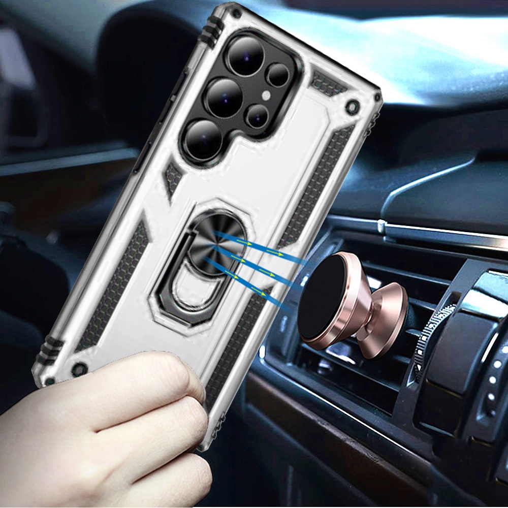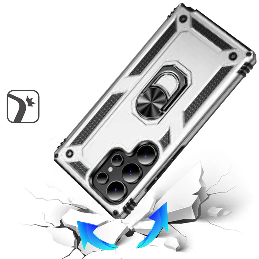 For Samsung s26 Ultra Ring Magnetic Kickstand Hybrid Case Cover - Silver