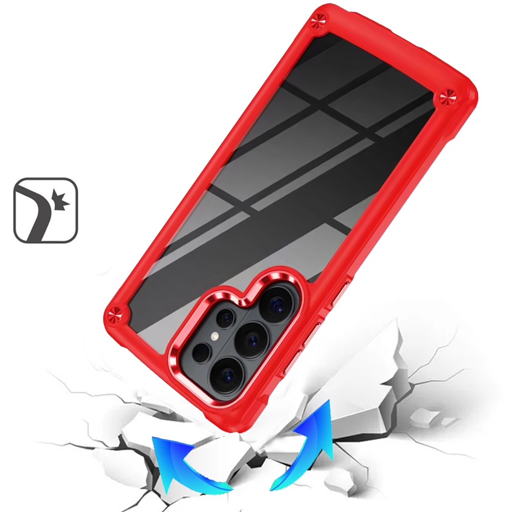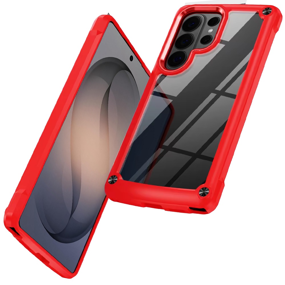 For Samsung s26 Ultra Ultimate CaseX Transparent Hybrid Case with Metal Buttons And Camera Edges - Red