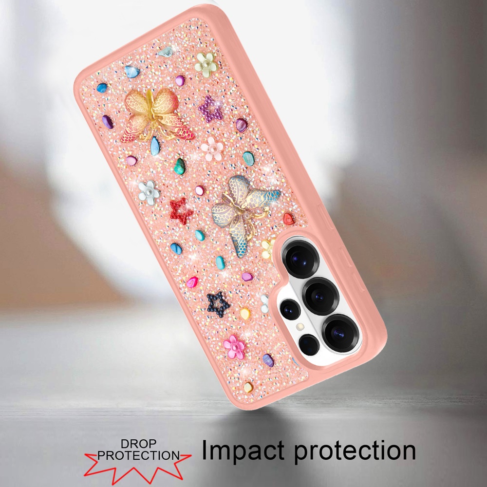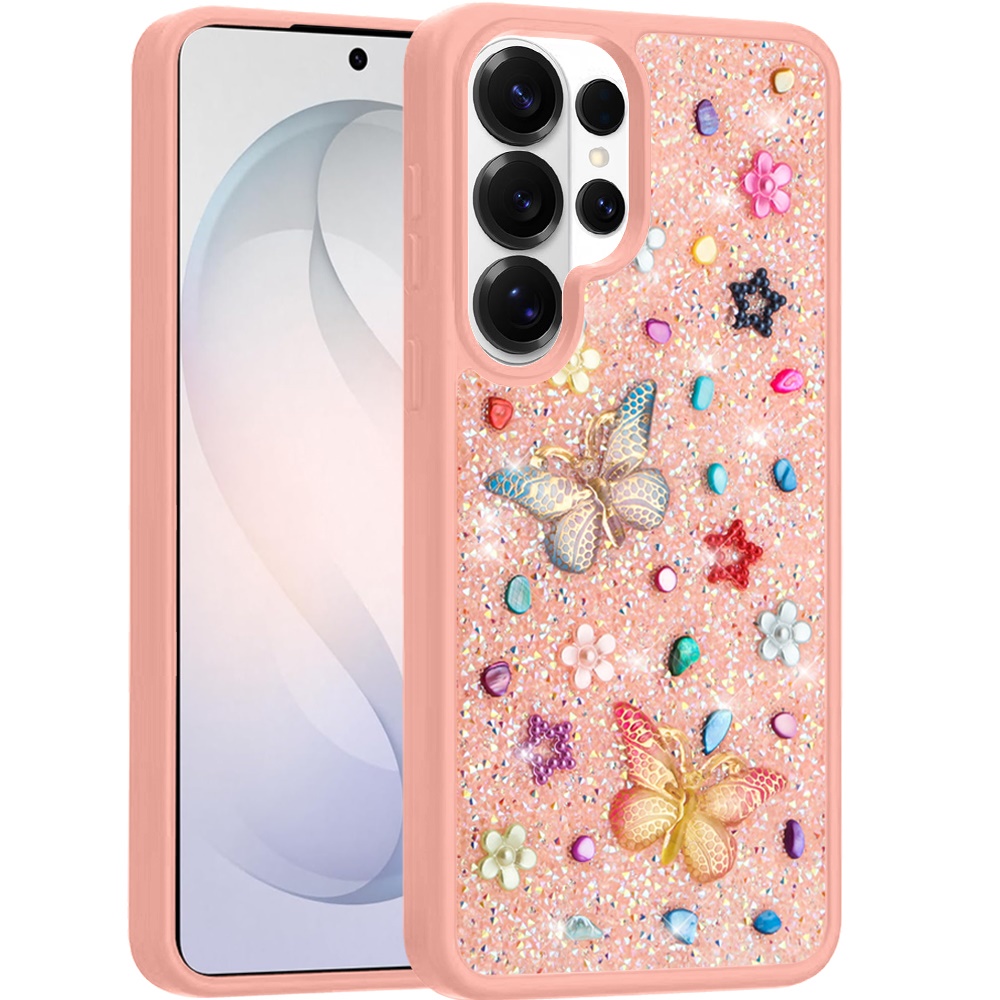 For Samsung s26 Ultra Butterfly Ornaments Diamond Bling Glitter Hybrid Case - Light Pink