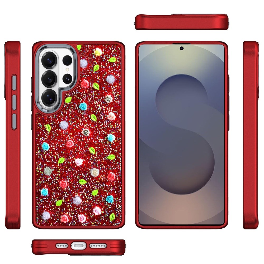 For Samsung s26 Ultra Stick-On Embedded Glass Diamonds of Colorful Floral Arrangement HQ Hybrid Case - Red