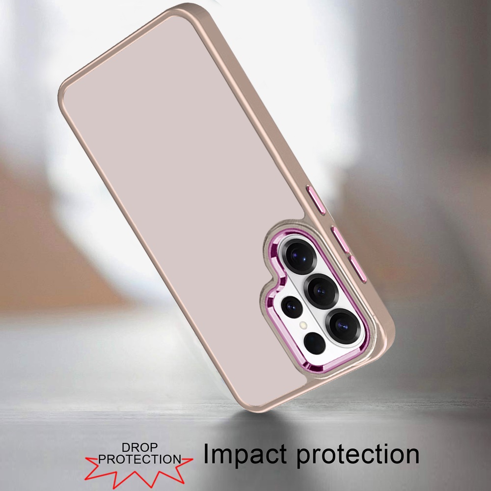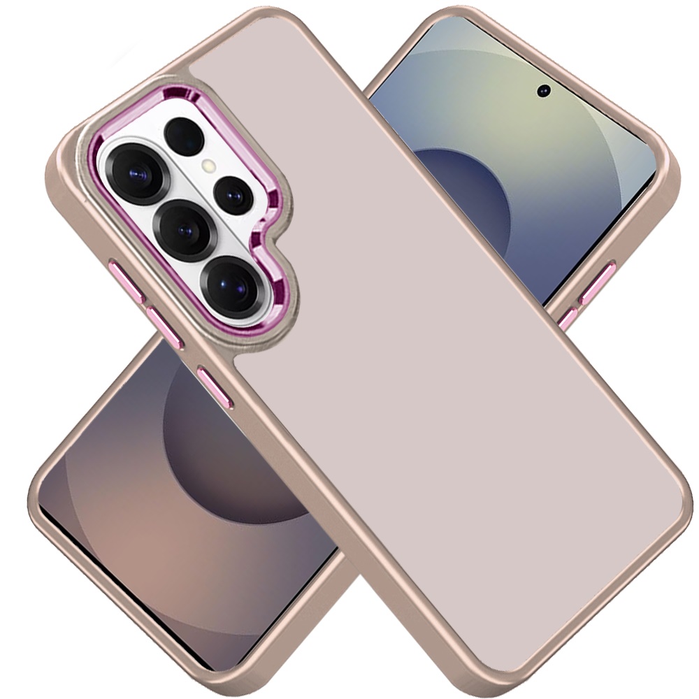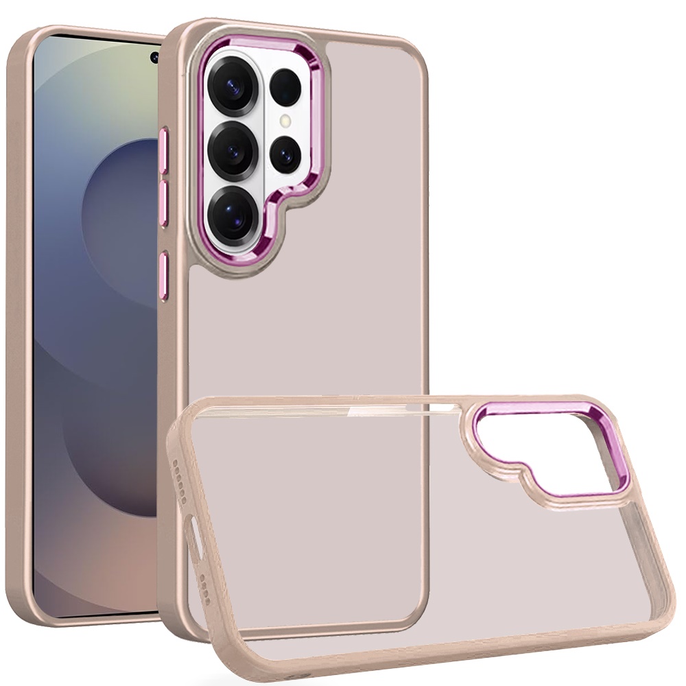 For Samsung s26 Ultra Polished Oil Thick Acrylic Metal Button Hybrid Case Cover - Beige