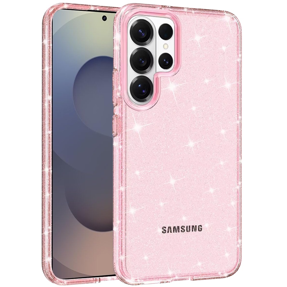 For Samsung s26 Ultra Glitter Ultra Thick 3mm Transparent Hybrid Case Cover - Pink