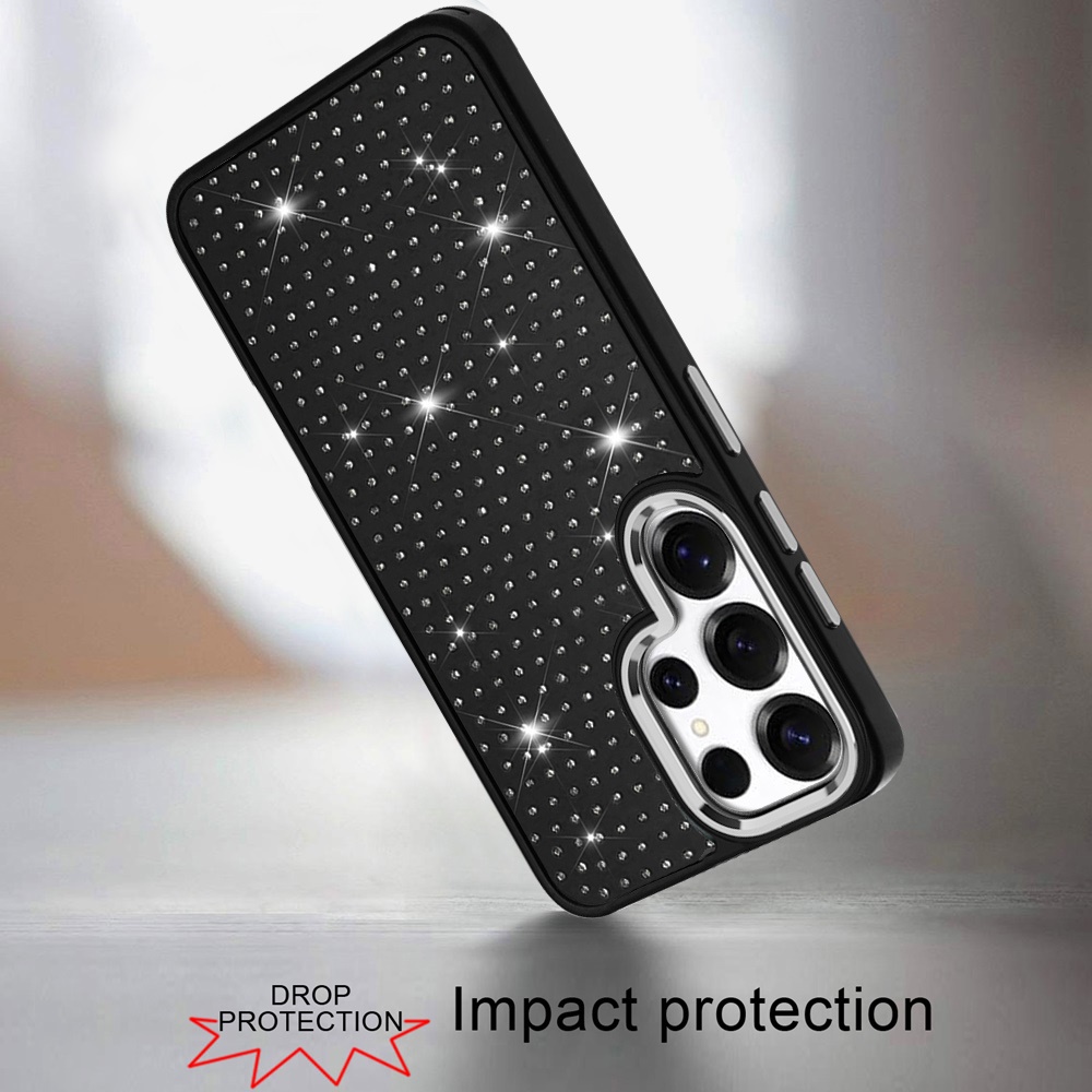 For Samsung s26 Ultra Beautiful Diamond Metallic Design Metal Chrome Edged Hybrid - Black