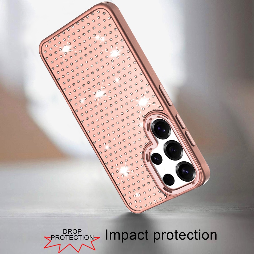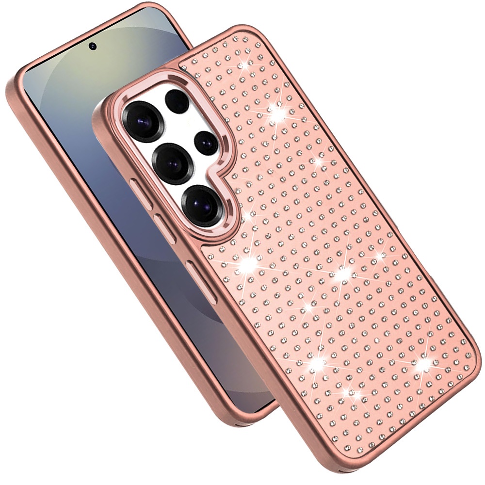 For Samsung s26 Ultra Beautiful Diamond Metallic Design Metal Chrome Edged Hybrid - Rose Gold