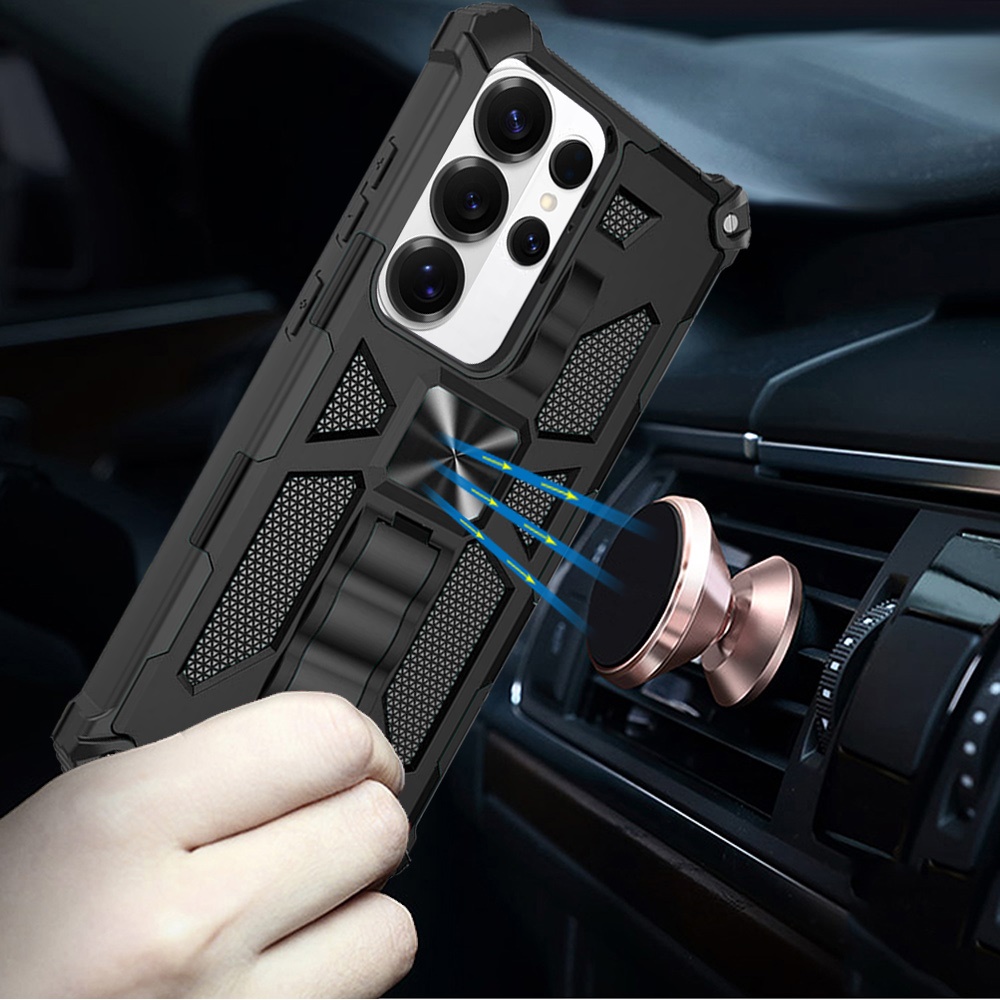 For Samsung s26 Ultra Machine Design Hybrid with Kickstand - Black