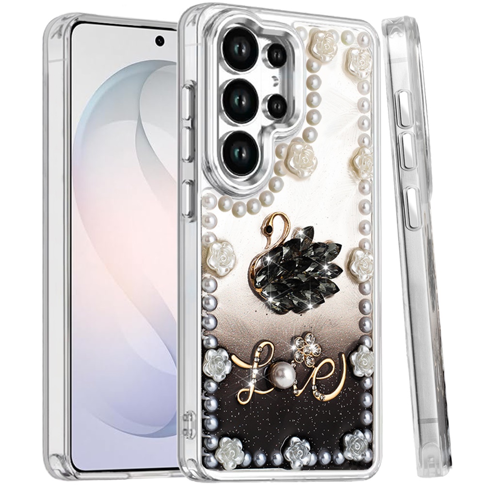 For Samsung s26 Ultra Pearls Epoxy Glitter Ornaments Design Chrome Edged Case - 2