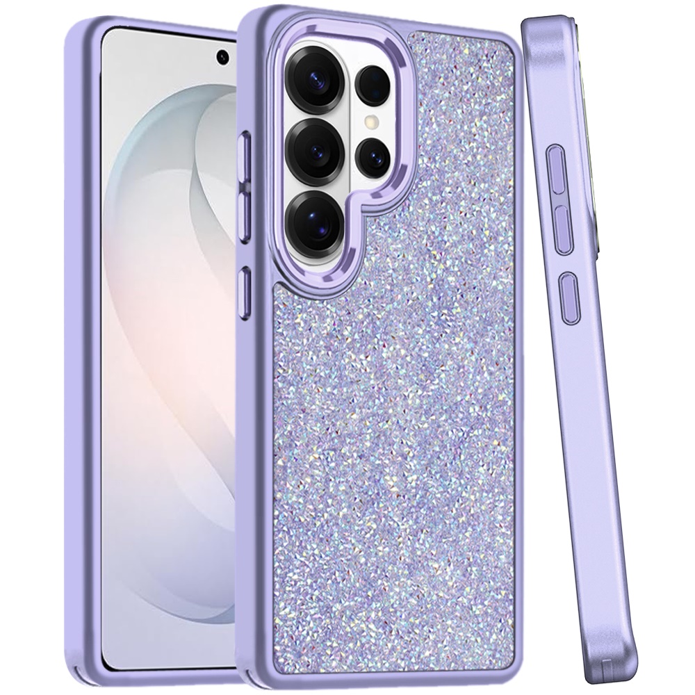 For Samsung s26 Ultra Crystal Glass Diamond with Metallic Buttons and Edges Hybrid Case - Dark Purple