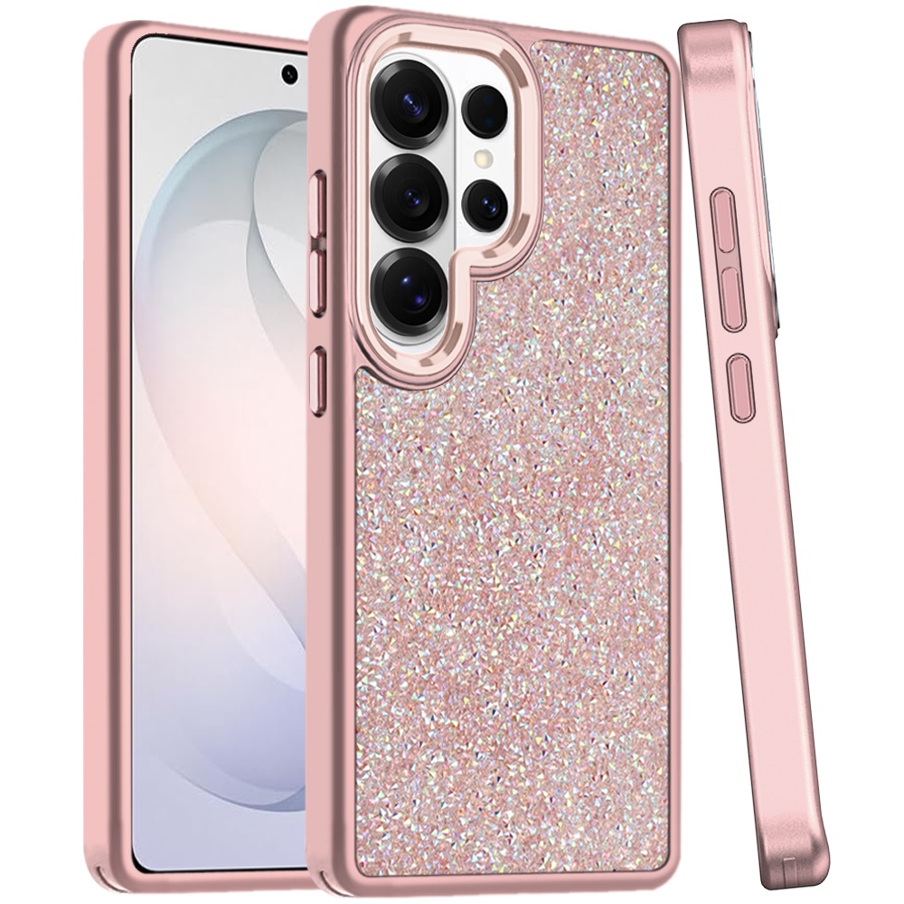 For Samsung s26 Ultra Crystal Glass Diamond with Metallic Buttons and Edges Hybrid Case - Rose Gold