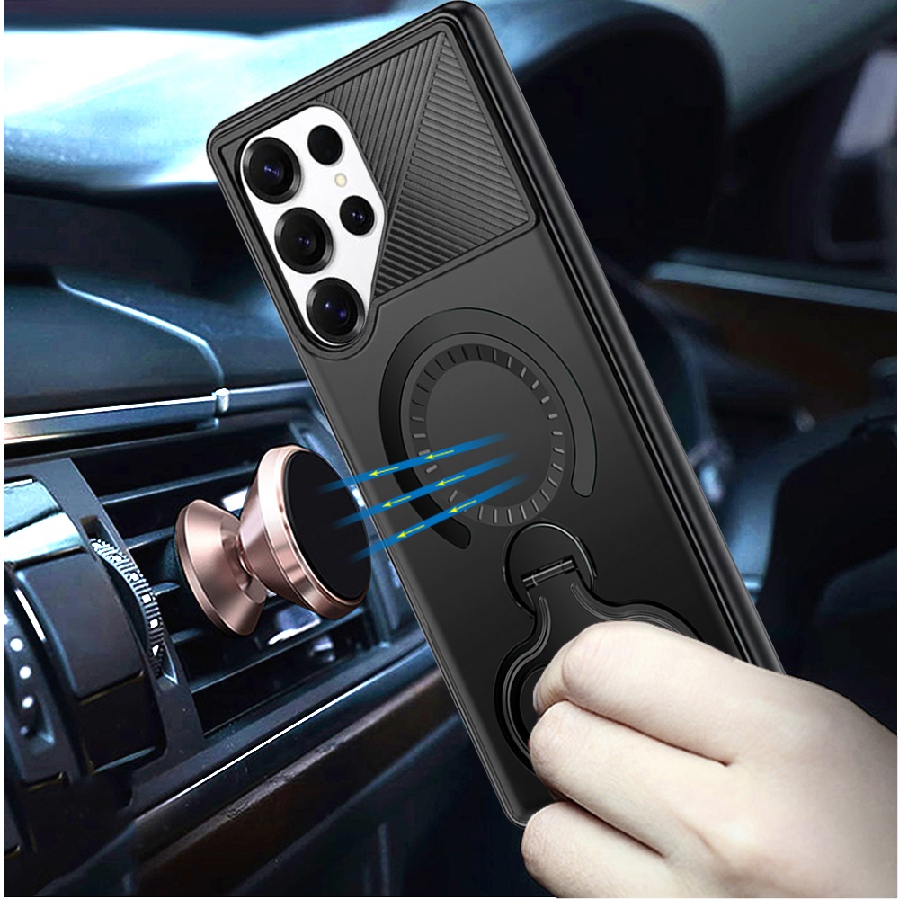 For Samsung s26 Ultra Car Mount with 2-Ring Stand Hybrid Case - Black
