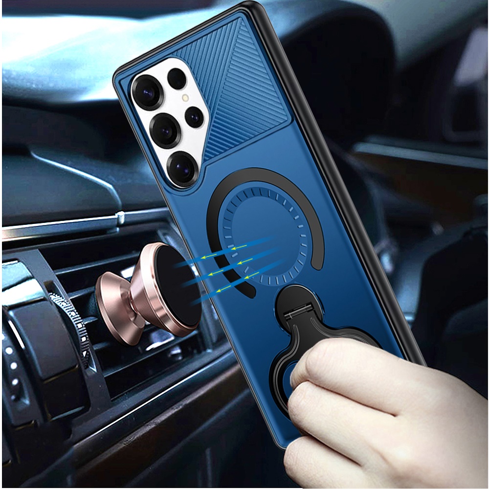 For Samsung s26 Ultra Car Mount with 2-Ring Stand Hybrid Case - Blue