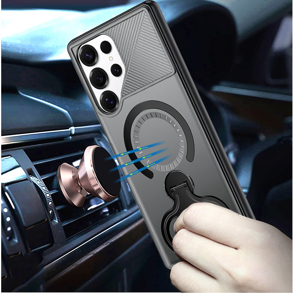 For Samsung s26 Ultra Car Mount with 2-Ring Stand Hybrid Case - Gray