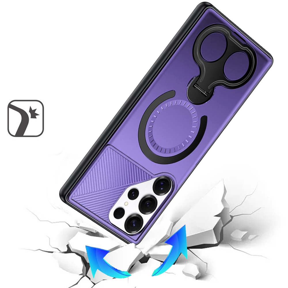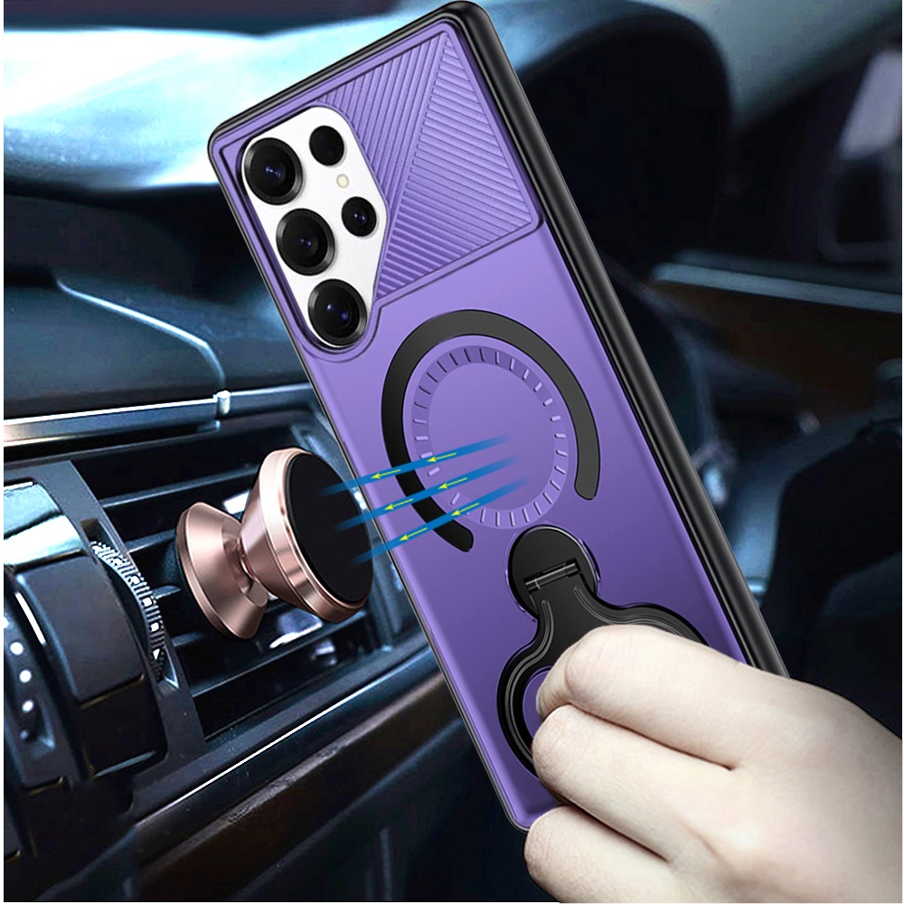 For Samsung s26 Ultra Car Mount with 2-Ring Stand Hybrid Case - Purple