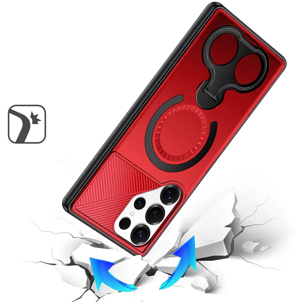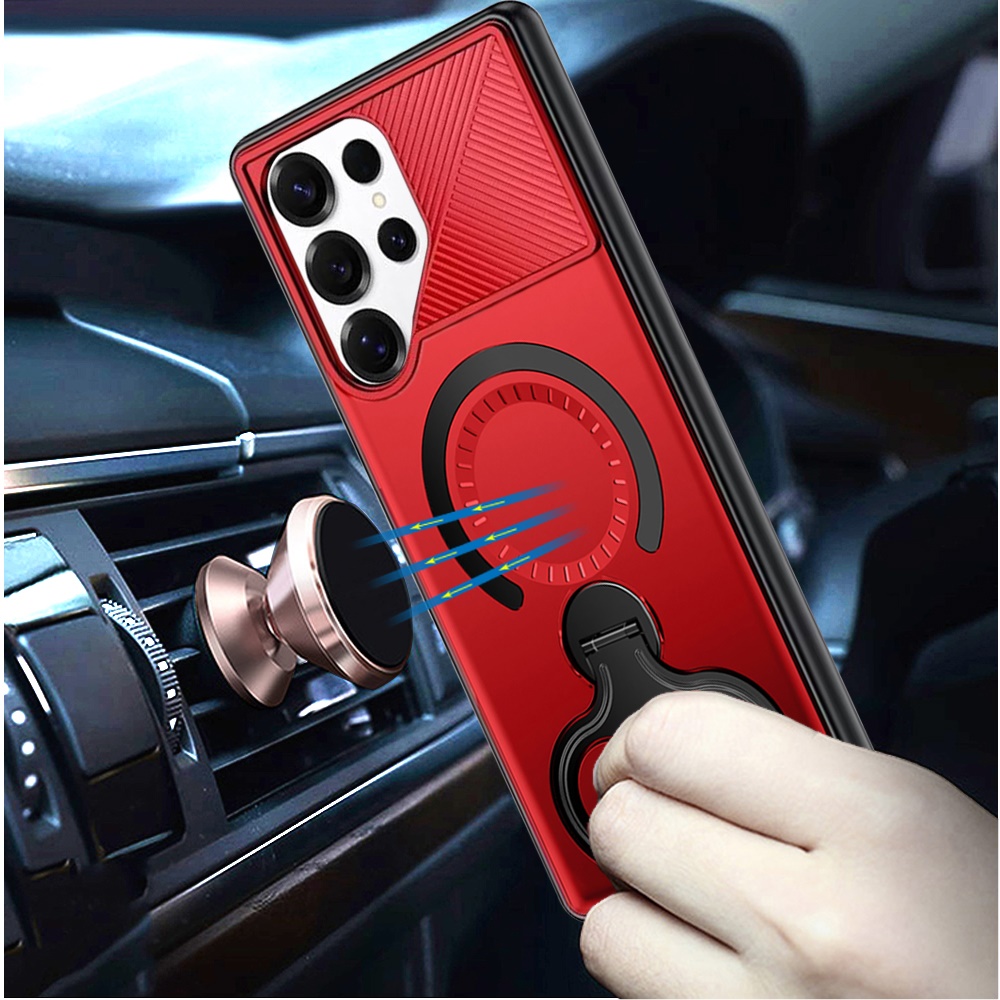 For Samsung s26 Ultra Car Mount with 2-Ring Stand Hybrid Case - Red