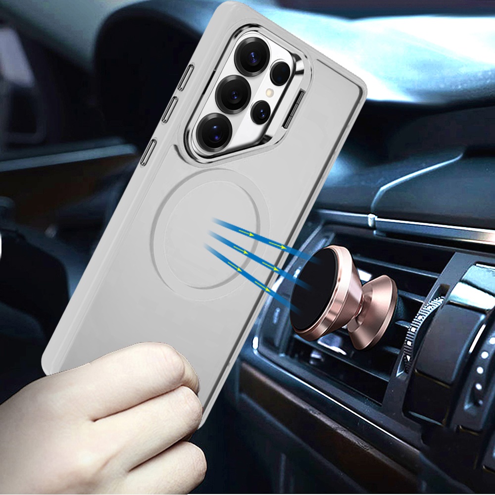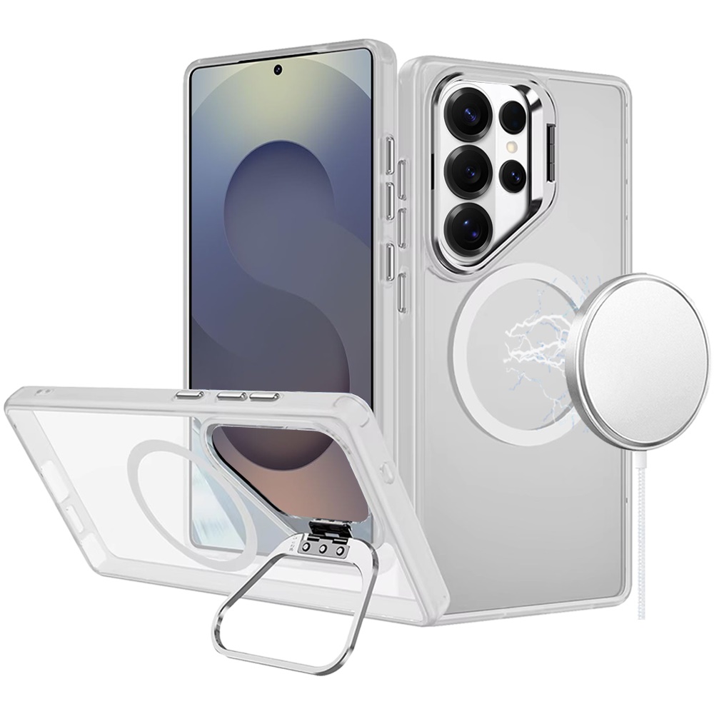For Samsung s26 Ultra Fearless Tough HQ Metallic Hybrid with Camera Ring Stand [Magnetic Circle] Case - Clear
