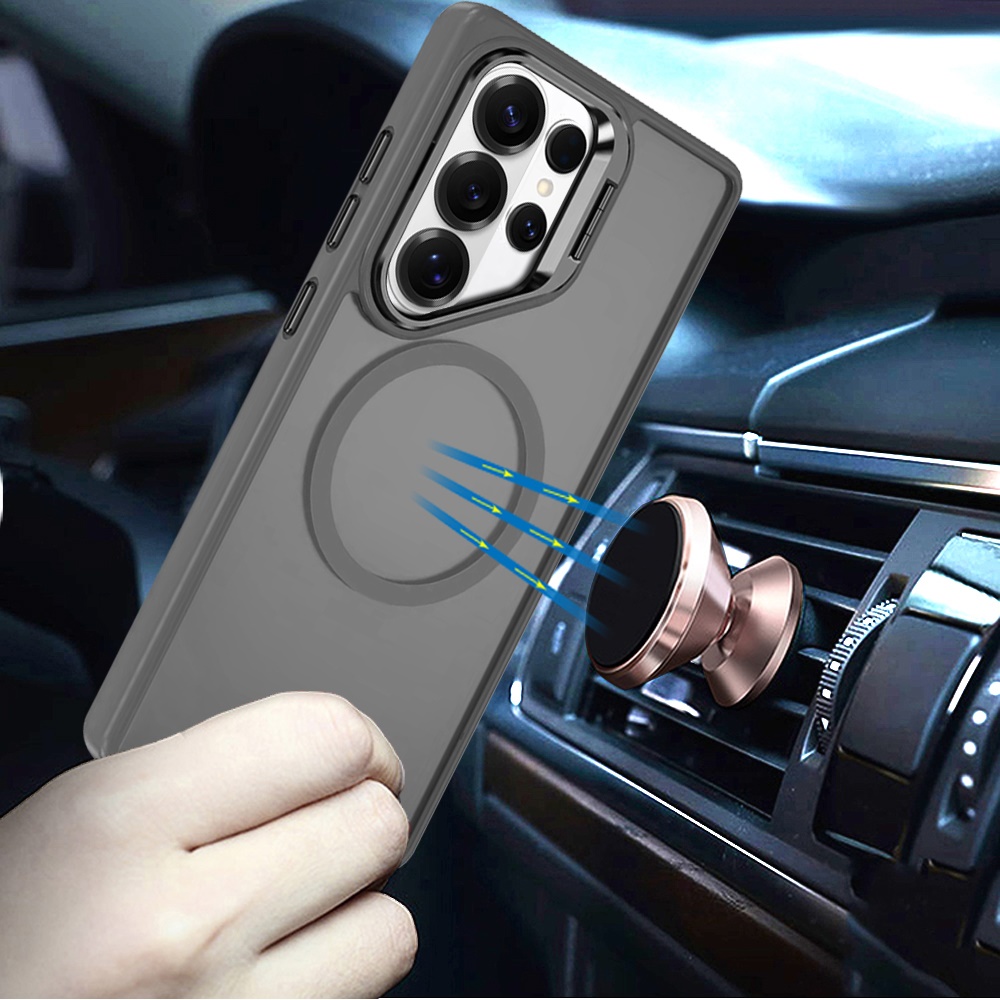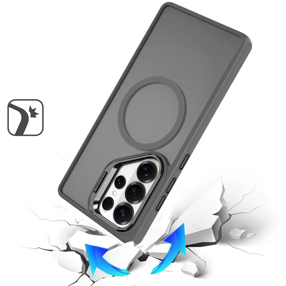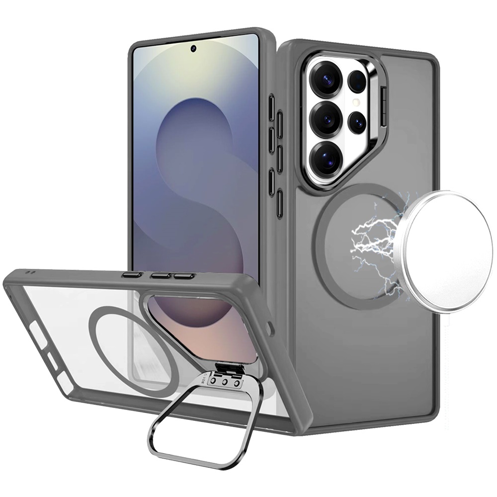 For Samsung s26 Ultra Fearless Tough HQ Metallic Hybrid with Camera Ring Stand [Magnetic Circle] Case - Gray