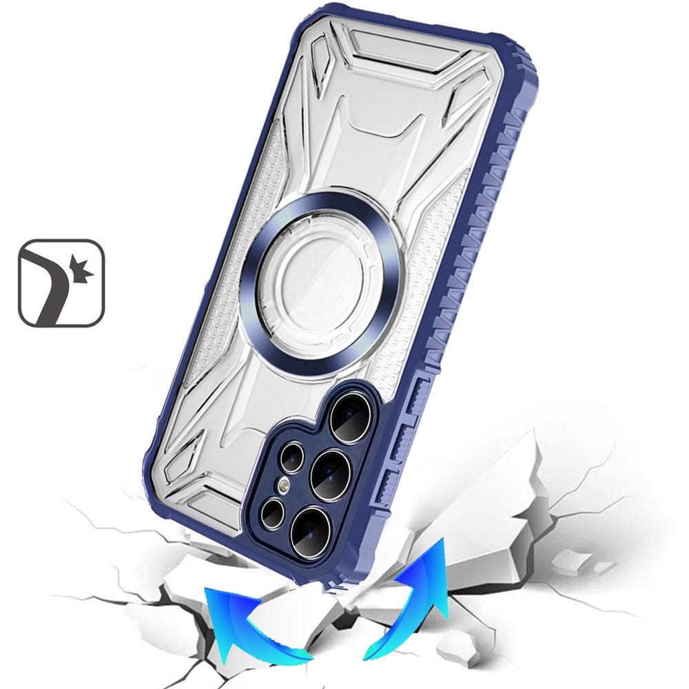 For Samsung s26 Ultra [Magnetic Circle] CD Pattern Transparent Rugged Hybrid - Dark Blue