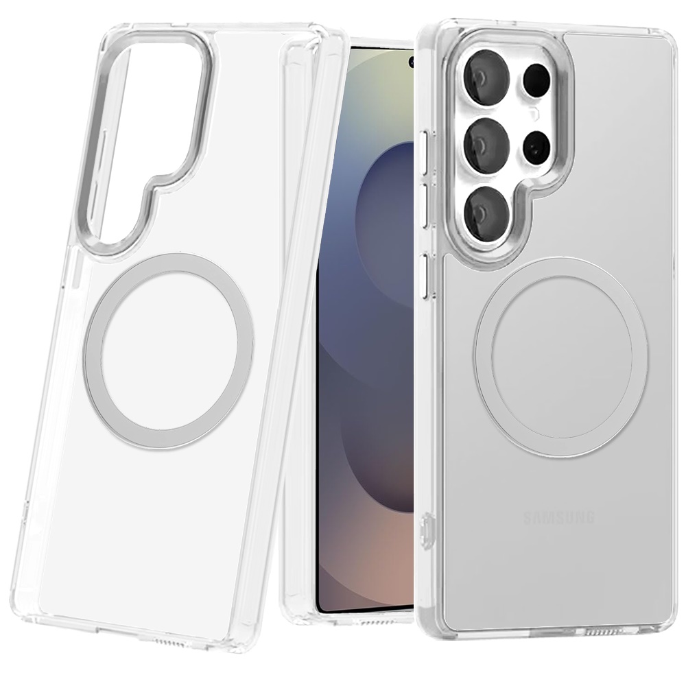 For Samsung s26 Ultra Magnetic Circle Ring Transparent Premium Acrylic with Metal Buttons & Camera Raised Lip - Clear
