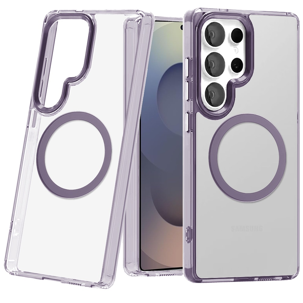 For Samsung s26 Ultra Magnetic Circle Ring Transparent Premium Acrylic with Metal Buttons & Camera Raised Lip - Light Purple