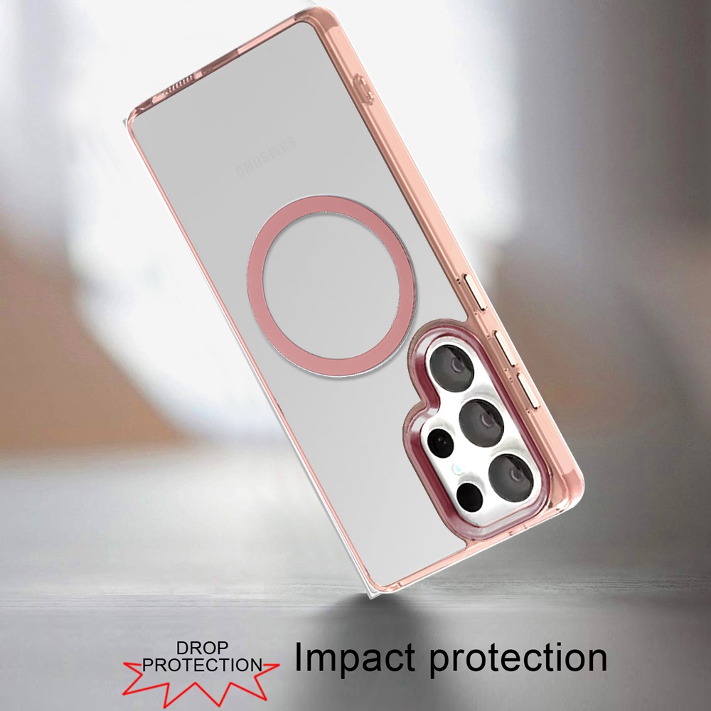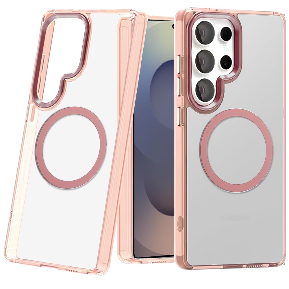 For Samsung s26 Ultra Magnetic Circle Ring Transparent Premium Acrylic with Metal Buttons & Camera Raised Lip - Rose Gold