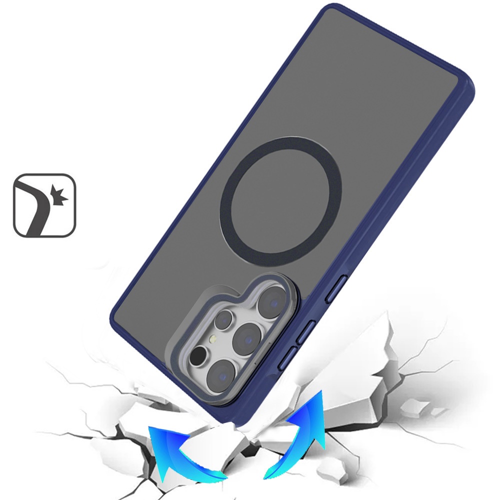 For Samsung s26 Ultra Frame Aluminium Camera Stand Metallic Buttons [Magnetic Circle] Tough HQ Hybrid Case - Navy Blue