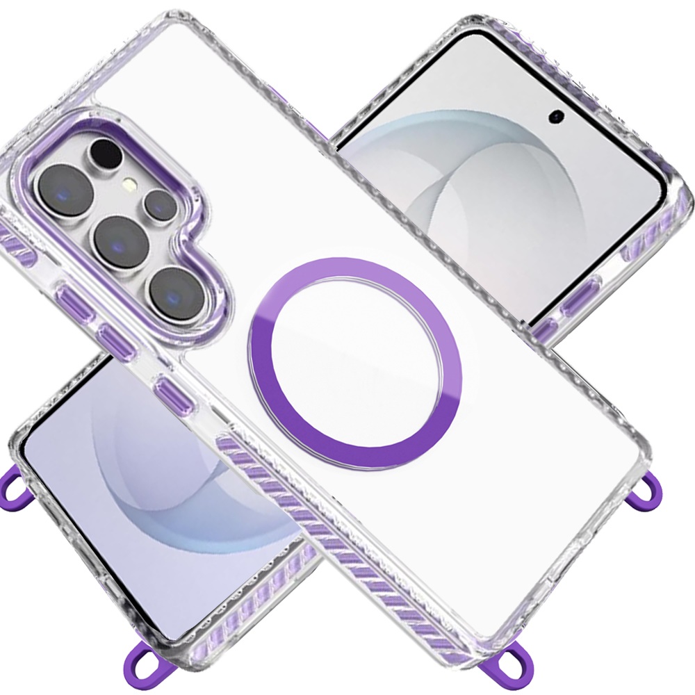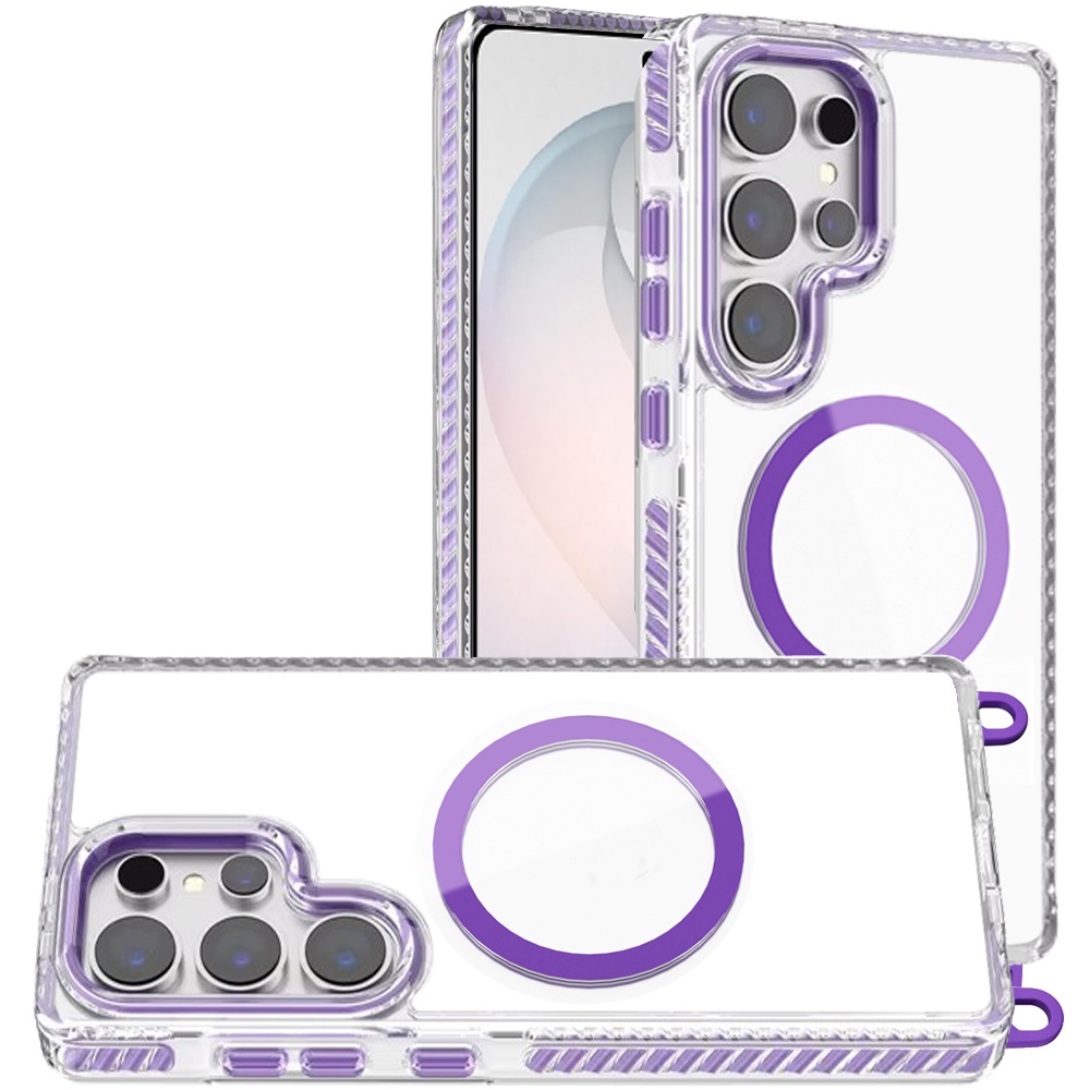 For Samsung s26 Ultra Transparent HQ Clear Line Design Edged Hybrid [Magnetic Circle] with Matching Lanyard - Dark Purple