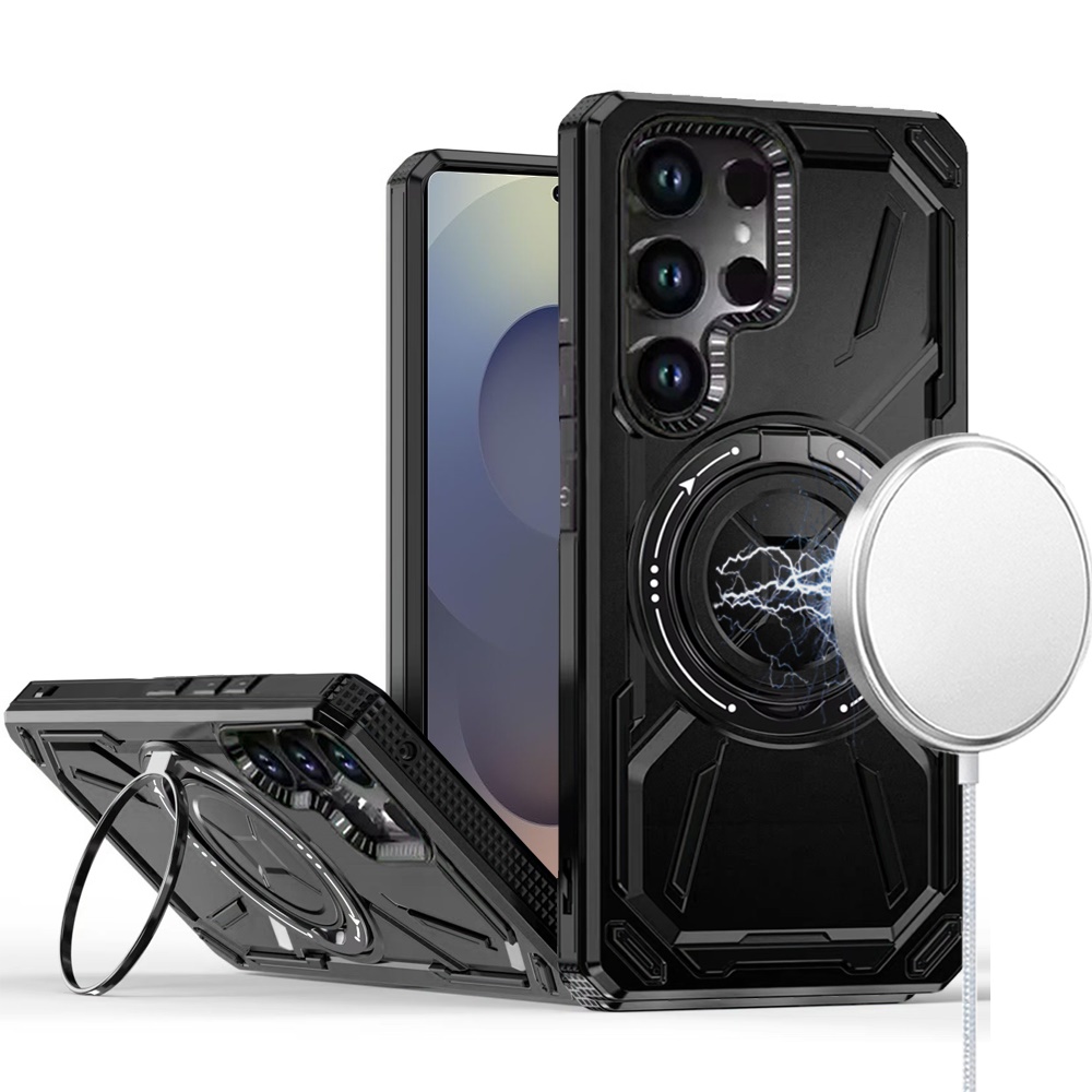 For Samsung s26 Ultra Loop Hybrid with [Magnetic Ring Circle] 360 degrees Rotational Kickstand Case Cover - Black