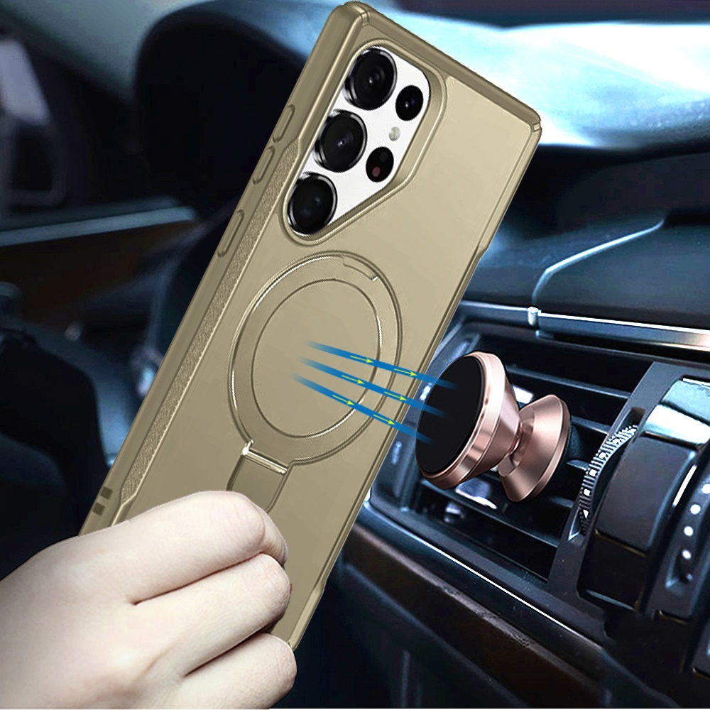 For Samsung s26 Ultra Matte Finish Simplified Magnetic Ring With Stand Hybrid Case - Khaki