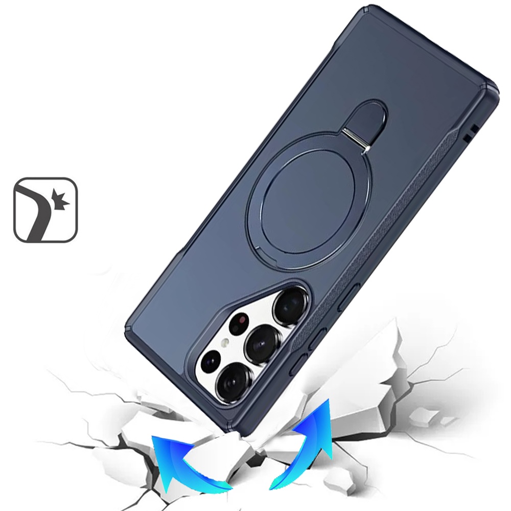 For Samsung s26 Ultra Matte Finish Simplified Magnetic Ring With Stand Hybrid Case - Navy Blue