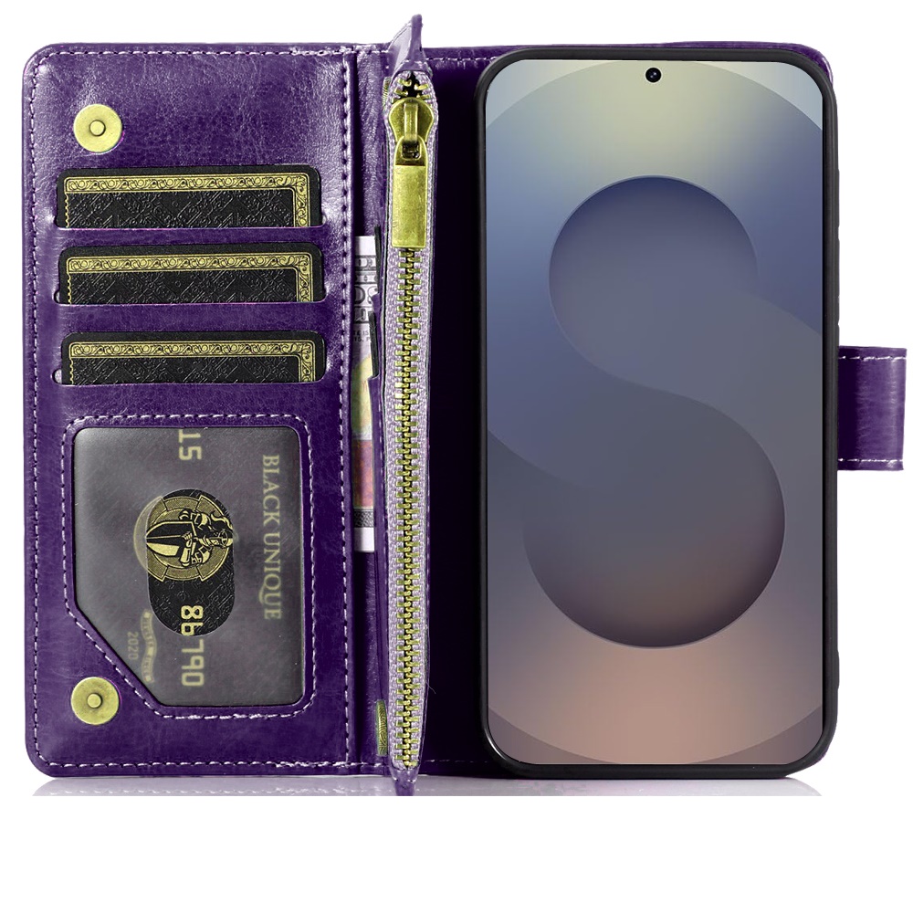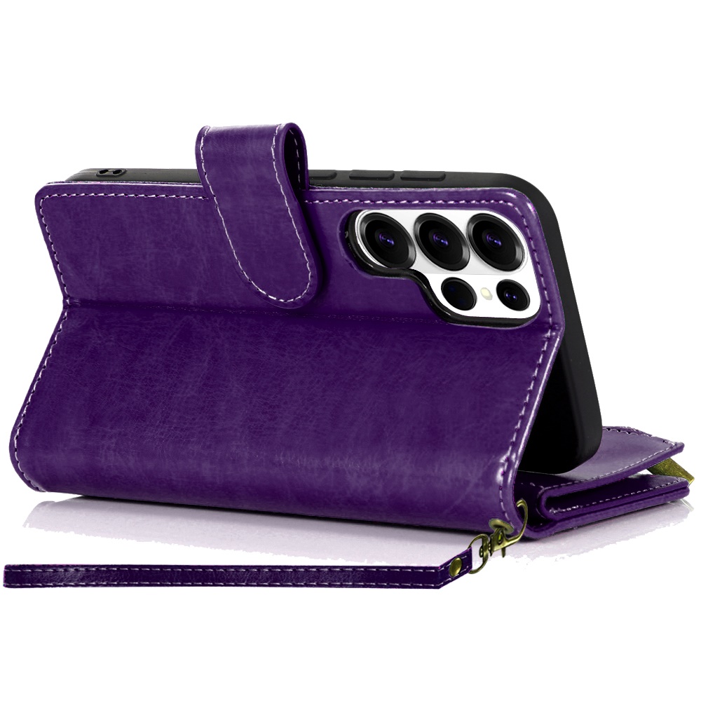 For Samsung s26 Ultra Luxury Wallet Card ID Zipper Money Holder Case Cover - Dark Purple