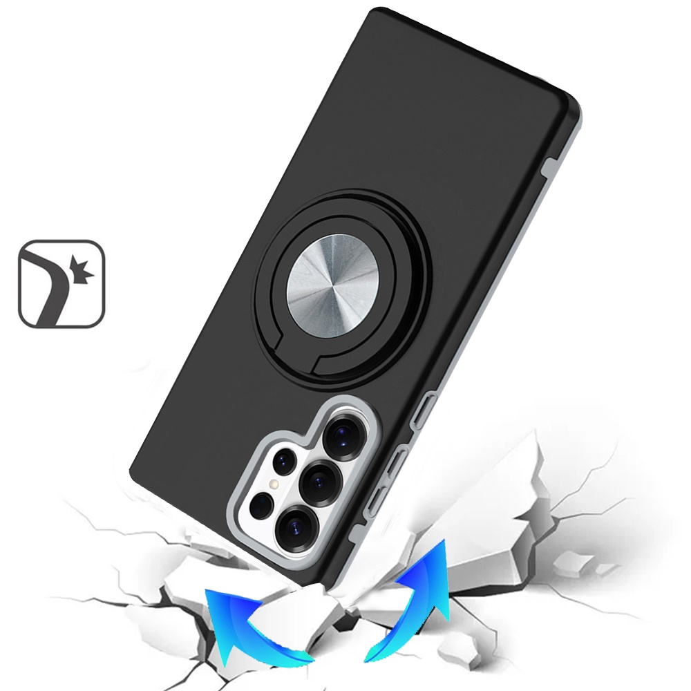 For Samsung s26 Ultra Metal CD Pattern Matte Finished Hybrid with Rotational Ring [Car Mount Friendly] Case - Black