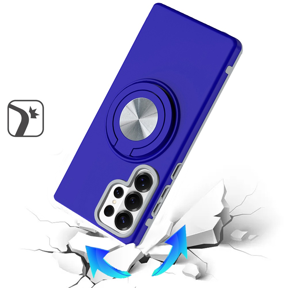 For Samsung s26 Ultra Metal CD Pattern Matte Finished Hybrid with Rotational Ring [Car Mount Friendly] Case - Blue