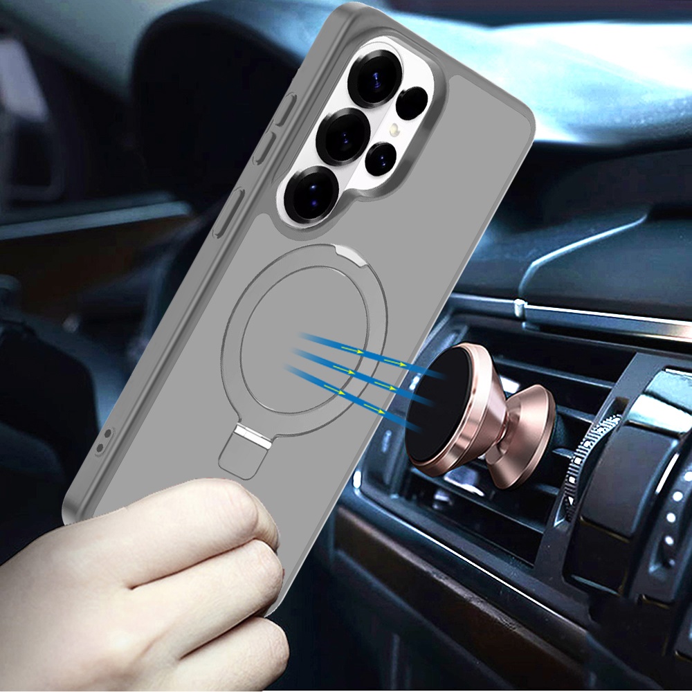 For Samsung s26 Ultra Magnetic Matching Ring Stand Full Rotation Matte Hybrid - Grey