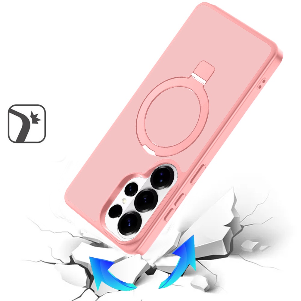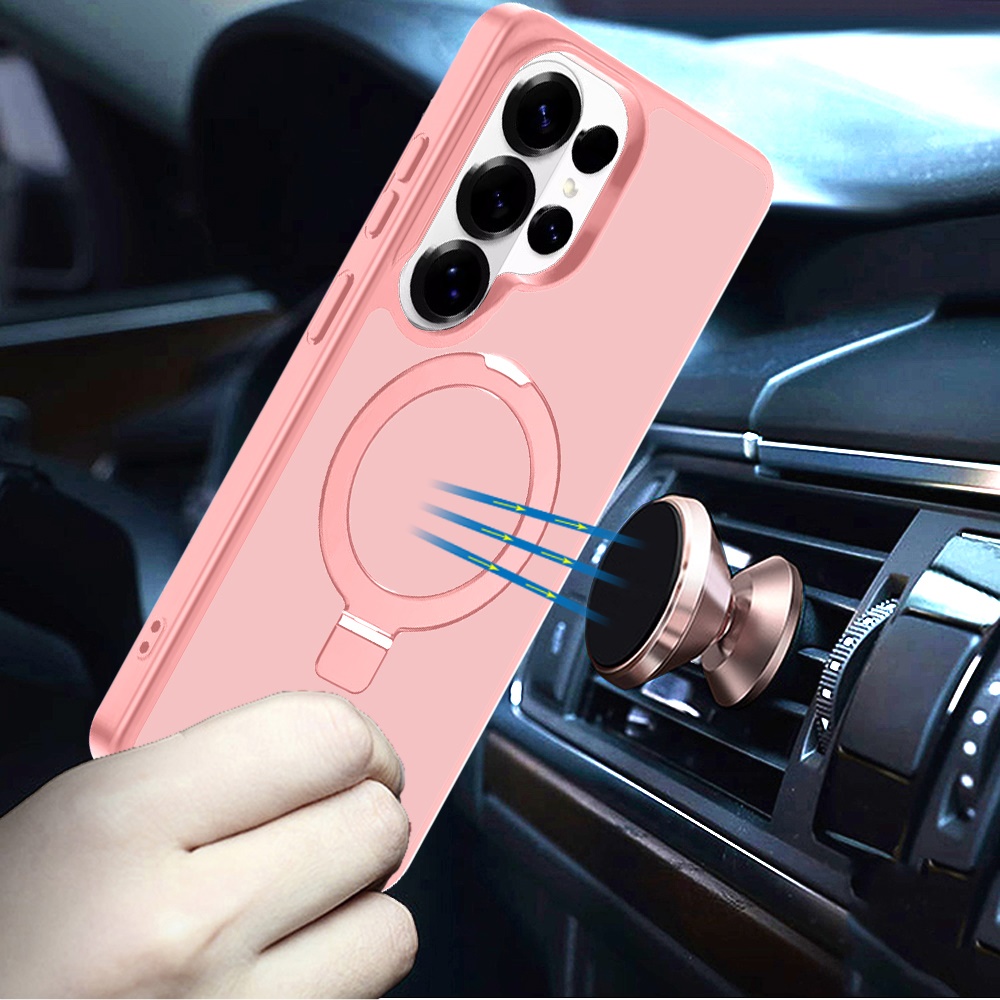 For Samsung s26 Ultra Magnetic Matching Ring Stand Full Rotation Matte Hybrid - Light Pink