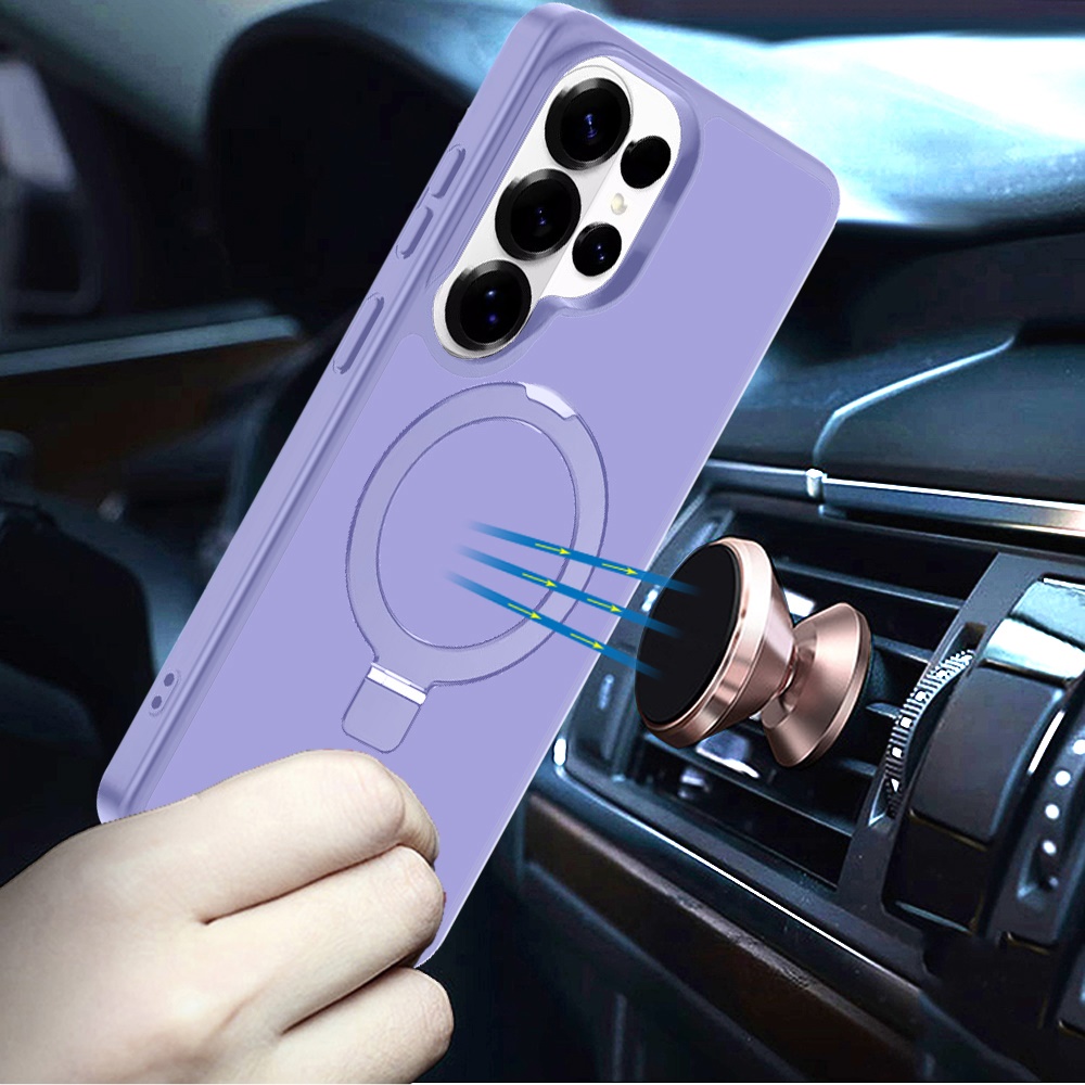 For Samsung s26 Ultra Magnetic Matching Ring Stand Full Rotation Matte Hybrid - Light Purple
