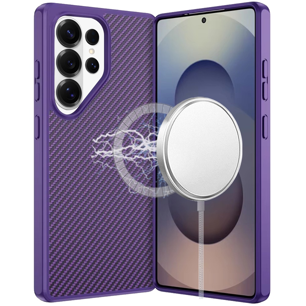 For Samsung s26 Ultra CarbonFiber Design Magnetic Ring HQ Thick 2.0mm Hybrid Case - Dark Purple