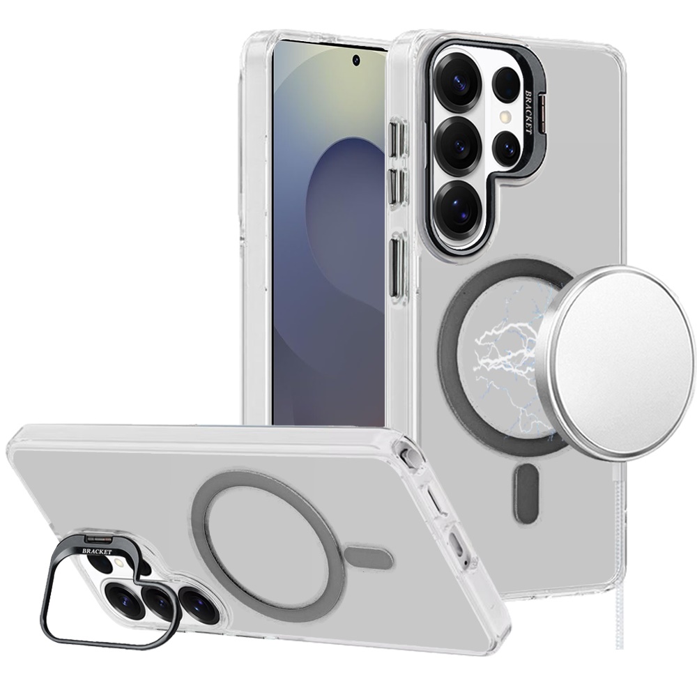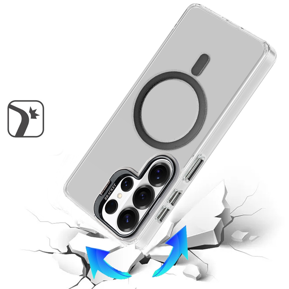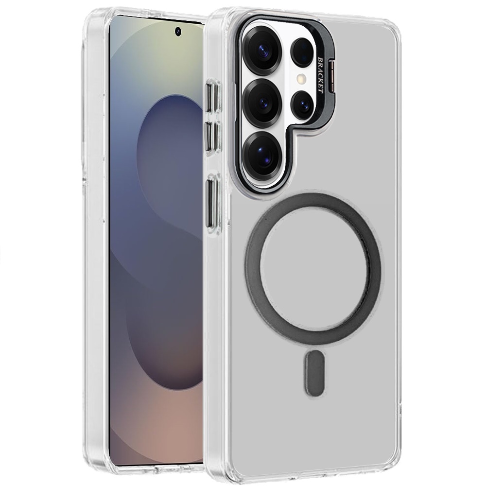 For Samsung s26 Ultra Transparent HQ Hybrid with Metallic Camera Stand Magnetic Ring Case - Black