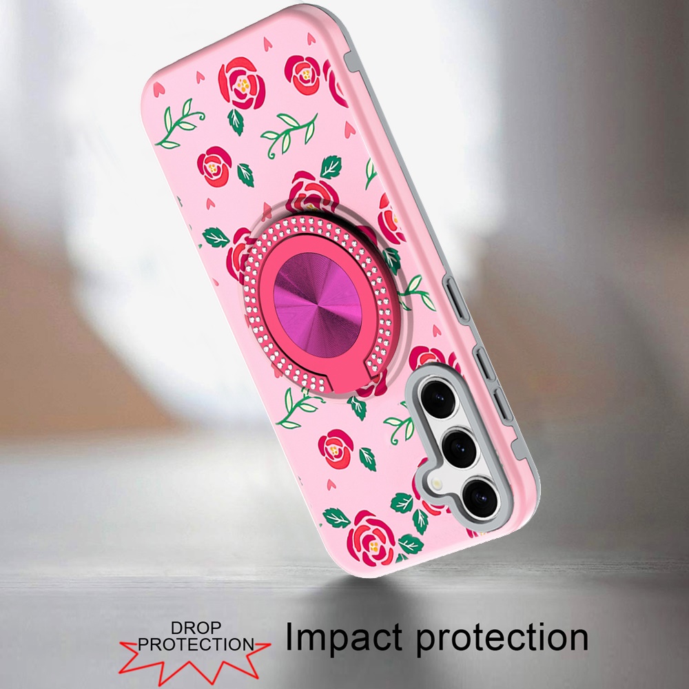 For Samsung s26 Metal Diamond CD Pattern Design Matte Finished Hybrid with Rotational Ring [Car Mount Friendly] Case - 10