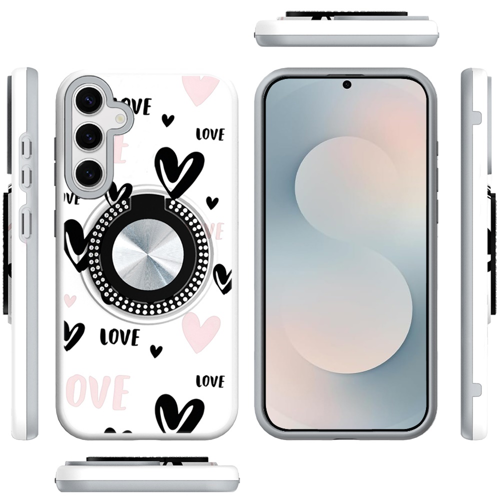 For Samsung s26 Metal Diamond CD Pattern Design Matte Finished Hybrid with Rotational Ring [Car Mount Friendly] Case - 2