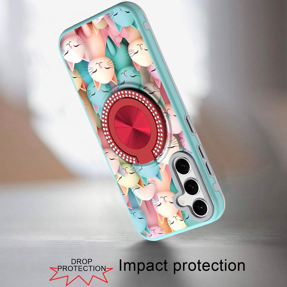 For Samsung s26 Edge Metal Diamond CD Pattern Design Matte Finished Hybrid with Rotational Ring [Car Mount Friendly] Case - Cats