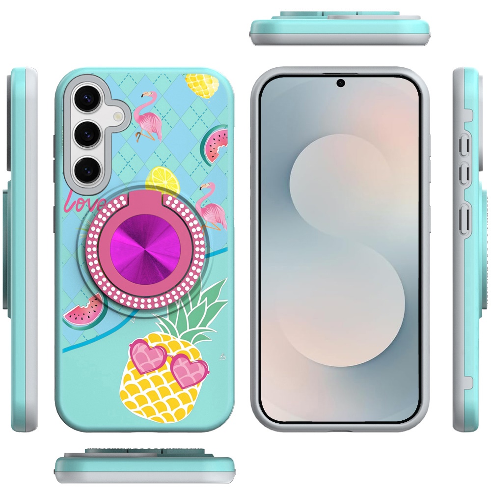 For Samsung s26 Edge Metal Diamond CD Pattern Design Matte Finished Hybrid with Rotational Ring [Car Mount Friendly] Case - Pineapple
