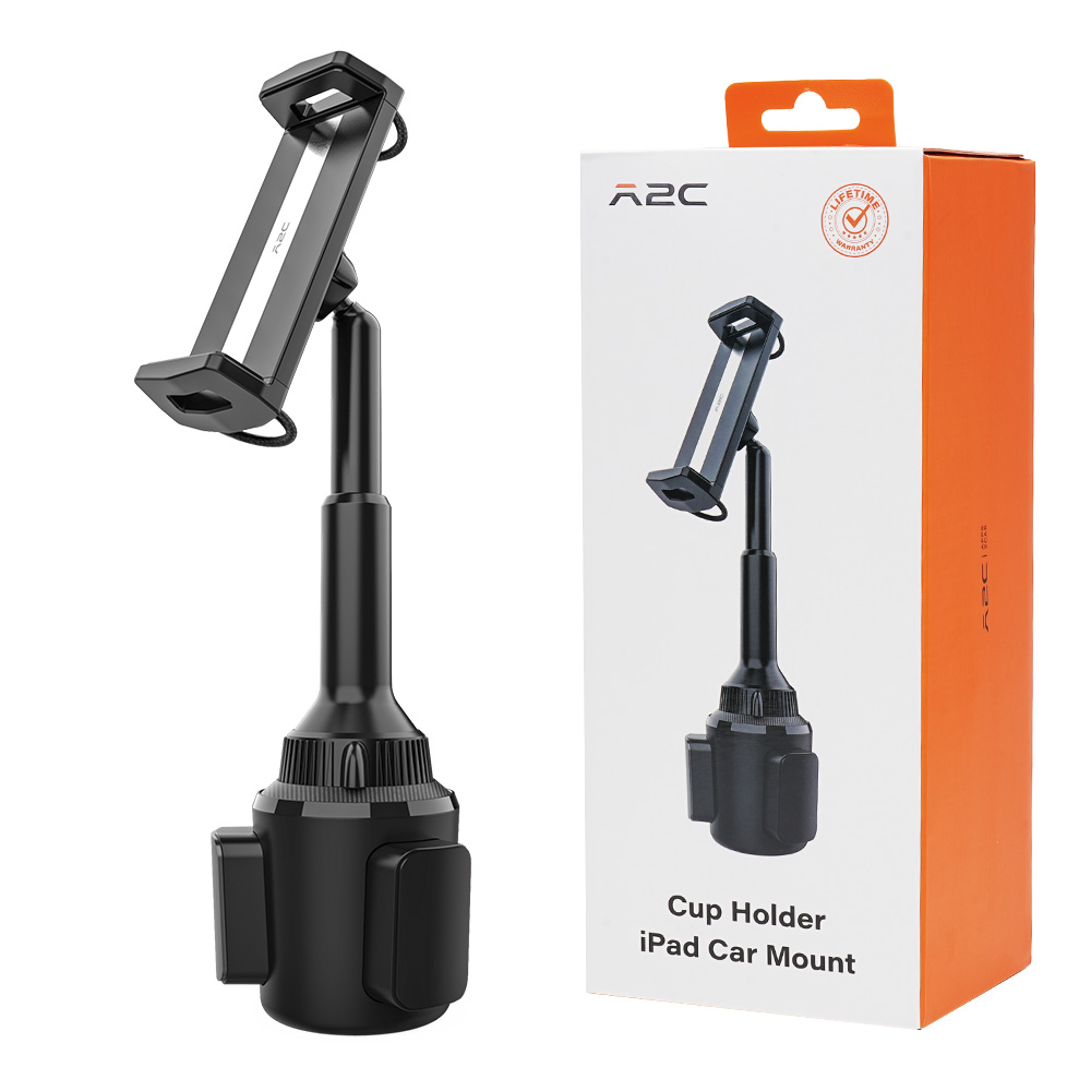 A2C PREMIUM CUP HOLDER IPAD CAR MOUNT - COMPATIBLE WITH 4.7INCH TO 12.9 INCH DEVICES - EFFORTLESS PULL CLAMP- SIMPLE HEIGHT ADJUSTMENT - VERSATILE ROTATABLE BASE (LANE B7 A2C#6)
