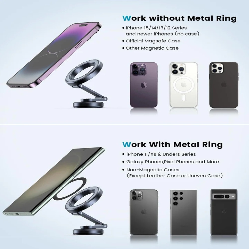 A2C FOLDABLE 360 ROTATING MAGNETIC PHONE HOLDER - AVIATION ALLOY MATERIAL - ULTRA STRONG MAGNETS 17 N54 MAGNETS - HOLLOW RING - OPTIMAL VIEW ANGLE - SUPERIOR HEAT RESISTANCE - 3M NANO ADHESIVE - M10X2 (LANE B7 - A2C#15)