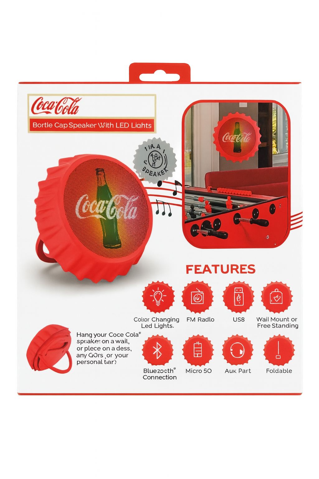 Coca-Cola Bottle Cap Shaped Bluetooth Speaker with Kickstand, Color Changing Light, FM Radio, 6H Playtime, Micro SD Card, Aux Port for Home/Outdoors/Beach/Bar | Portable Bluetooth Speakers (C4 DRINK#17)